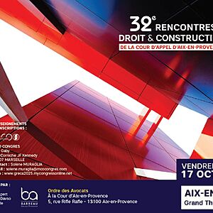 Les 32 ièmes RENCONTRES DROIT & CONSTRUCTION de la Cour d'appel d'Aix-en-Provence auront lieu le vendredi 17 octobre 2025