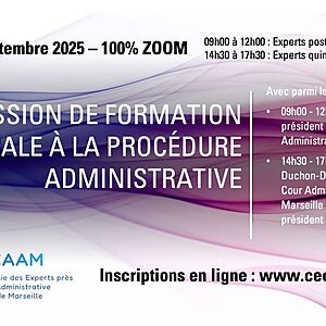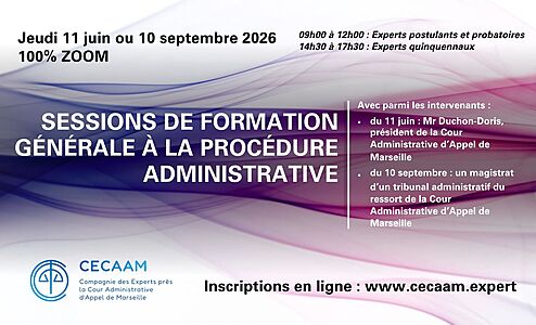 organisée par la La Compagnie des Experts près la Cour Administrative d’Appel de Marseille le le jeudi 4 septembre 2025 à 100 % en visioconférence sur ZOOM