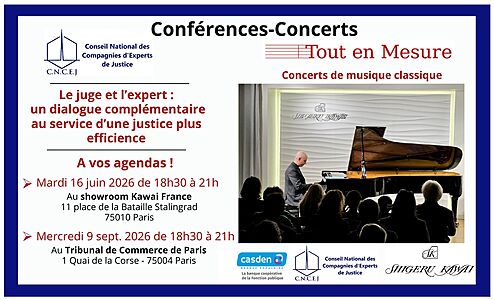 Le CNCEJ et l'association Tout en Mesure ont le plaisir de vous annoncer un cycle de 4 conférences-concerts sur le thème “Le juge et l’expert : un dialogue complémentaire au service d’une justice plus efficience"