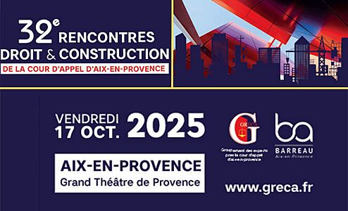 Les 32 ièmes RENCONTRES DROIT & CONSTRUCTION de la Cour d'appel d'Aix-en-Provence auront lieu le vendredi 17 octobre 2025
