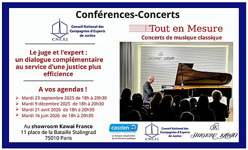 Le CNCEJ et l'association Tout en Mesure ont le plaisir de vous annoncer un cycle de 4 conférences-concerts sur le thème “Le juge et l’expert : un dialogue complémentaire au service d’une justice plus efficience"