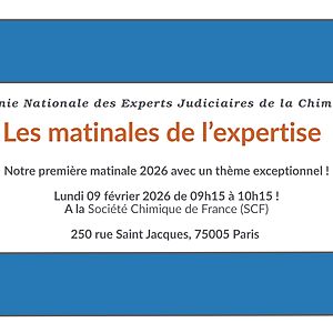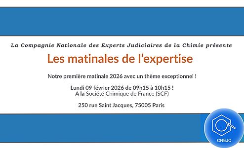 La Compagnie Nationale des Experts Judiciaires de la Chimie organise sa première matinale 2026 le Lundi 09 février 2026 de 09h15 à 10h15 à Paris, avec un thème exceptionnel : "Authenticité des vins Outils et stratégies analytiques de lutte contre la fraude"